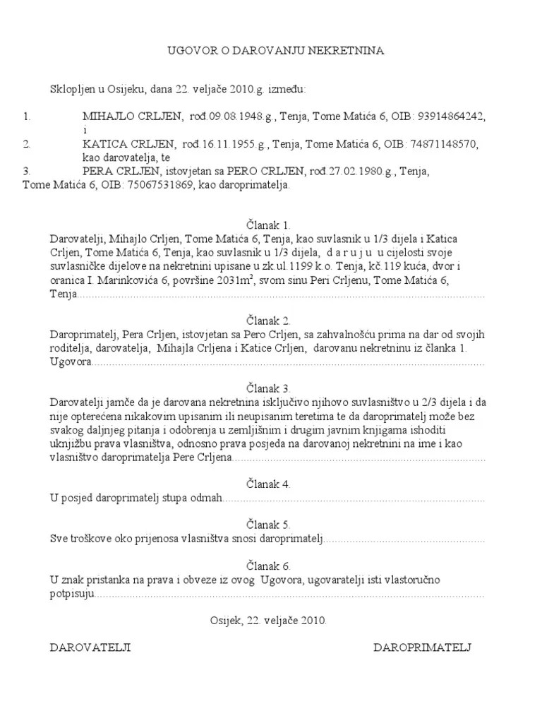 Darovanju Nekretnina Darovni Ugovor Obrazac Download